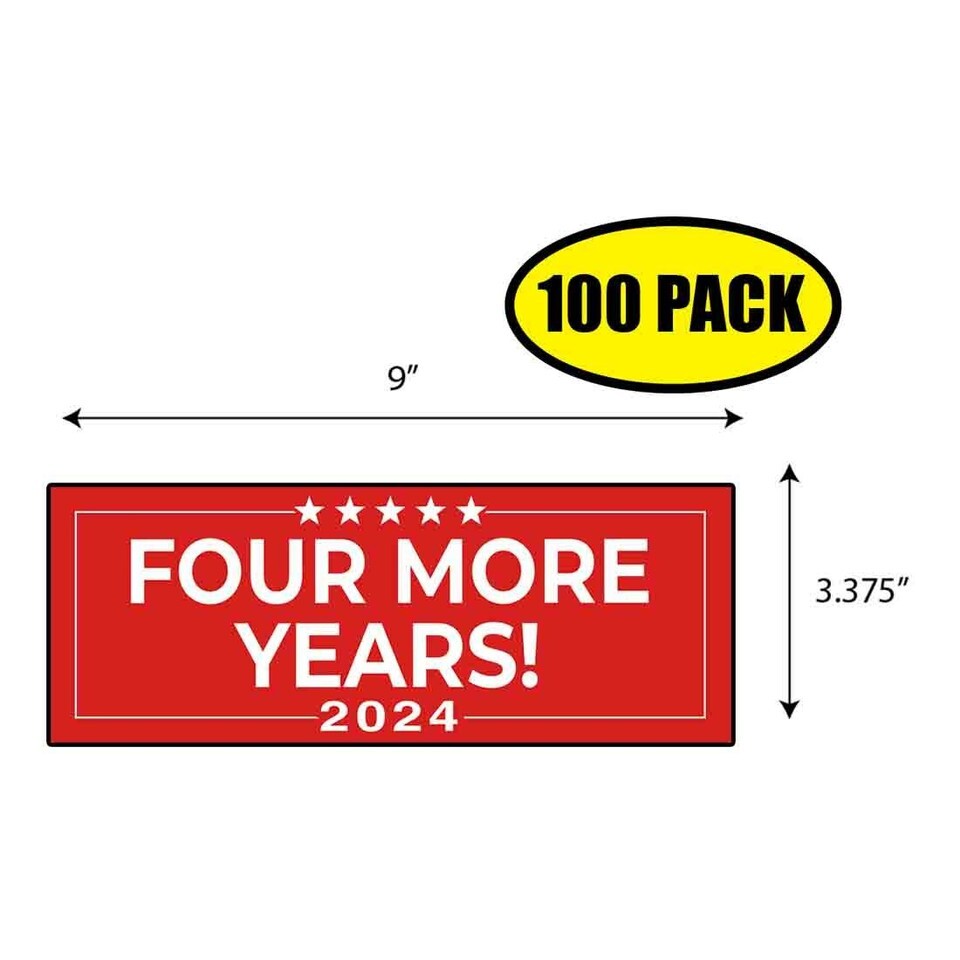 100 PACK 3.375"x9" TRUMP FOUR MORE 2024 Sticker Decal Humor Funny Gift BS0141