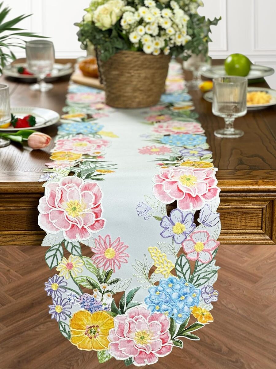 Floral Spring Table Runner – 13" x 72" – 100% Polyester