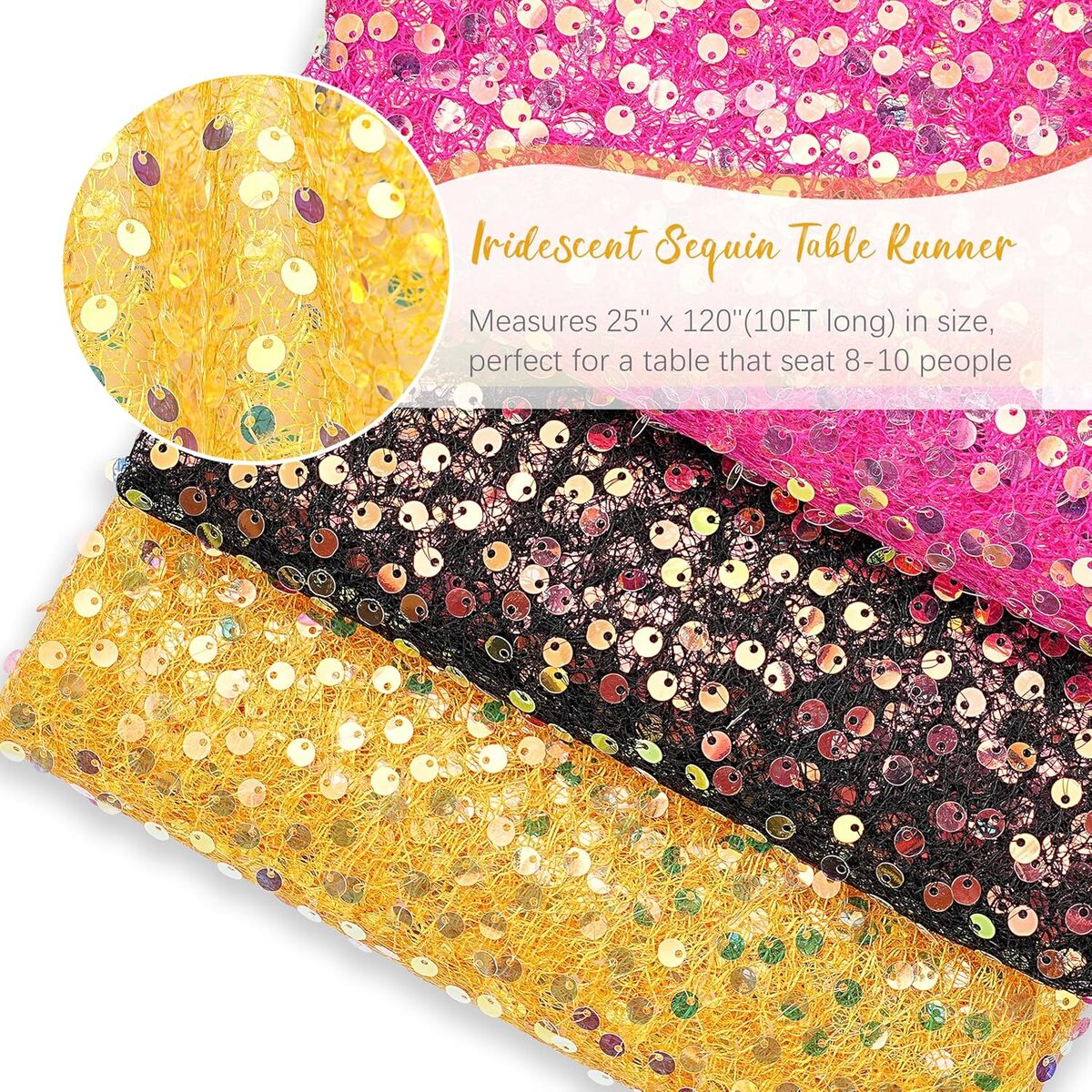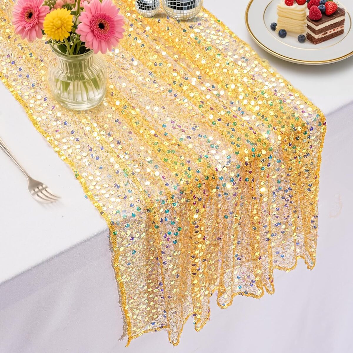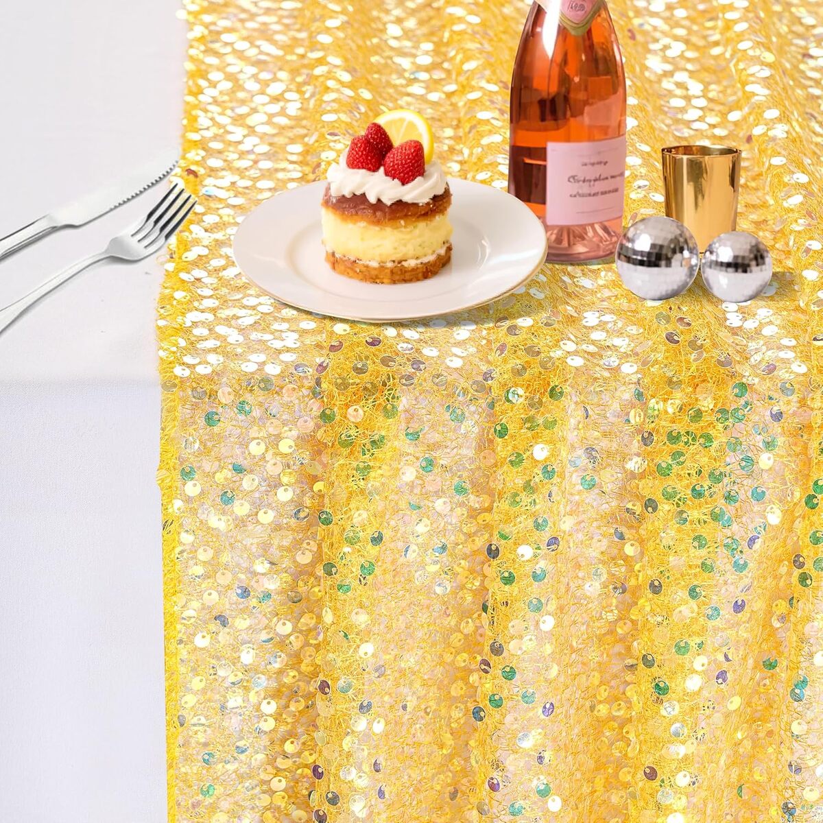 Gold Sequin Table Runner – 25" x 120" (10FT) – Iridescent Mermaid Style