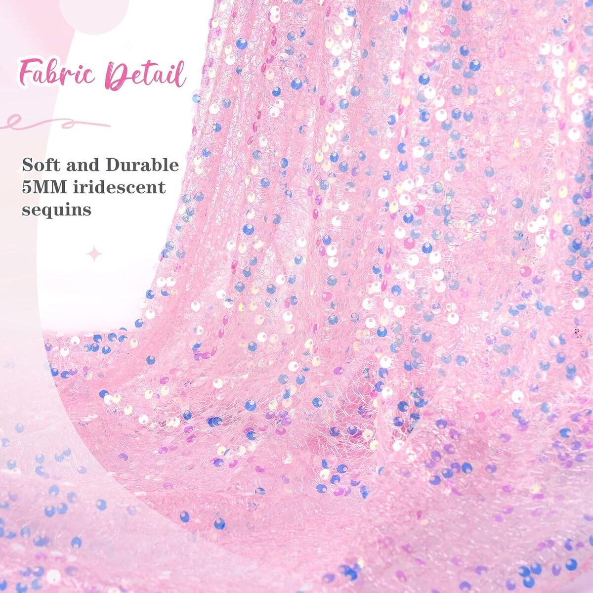 • Made with 5mm round sequins and mesh fabric backing