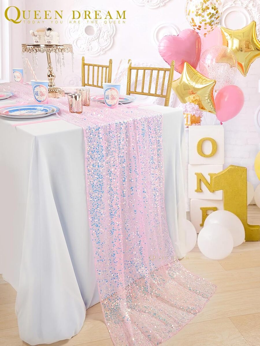 Sequin Iridescent Table Runner 25 x 120 Inches Pink New