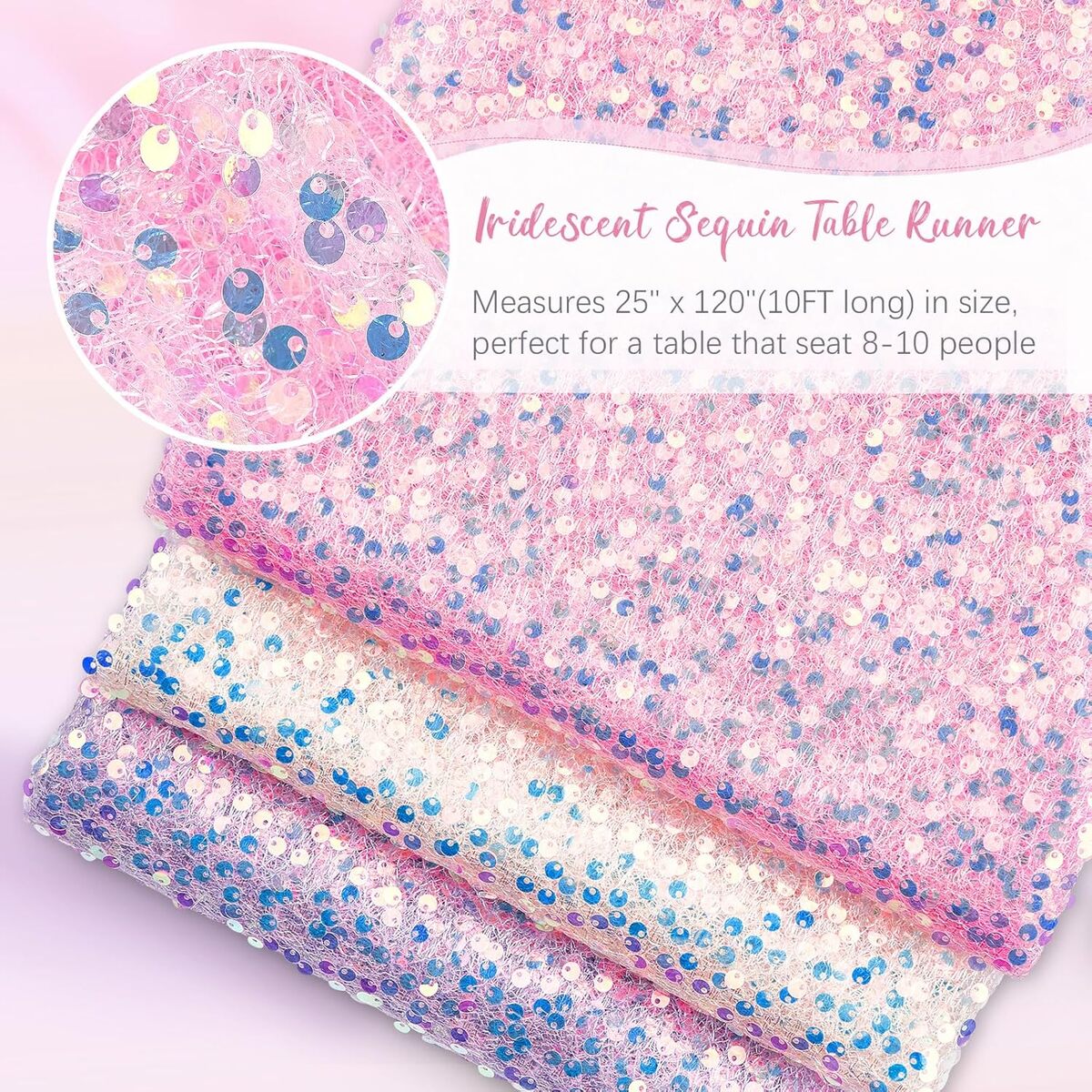 Pink Sequin Table Runner – 25" x 120" (10FT) – Iridescent Mermaid Style