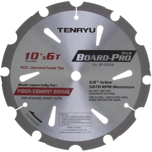 Tenryu BP-25506 Board-Pro Plus Fiber Cement 10" 6T Saw Blade |