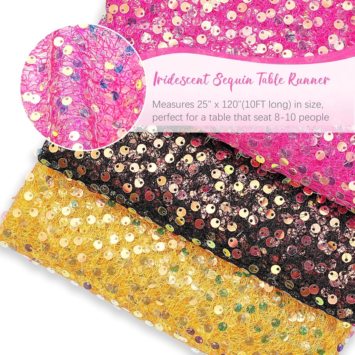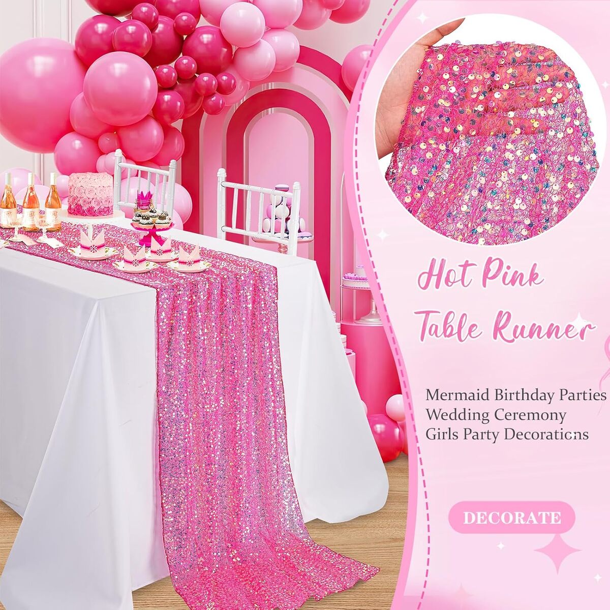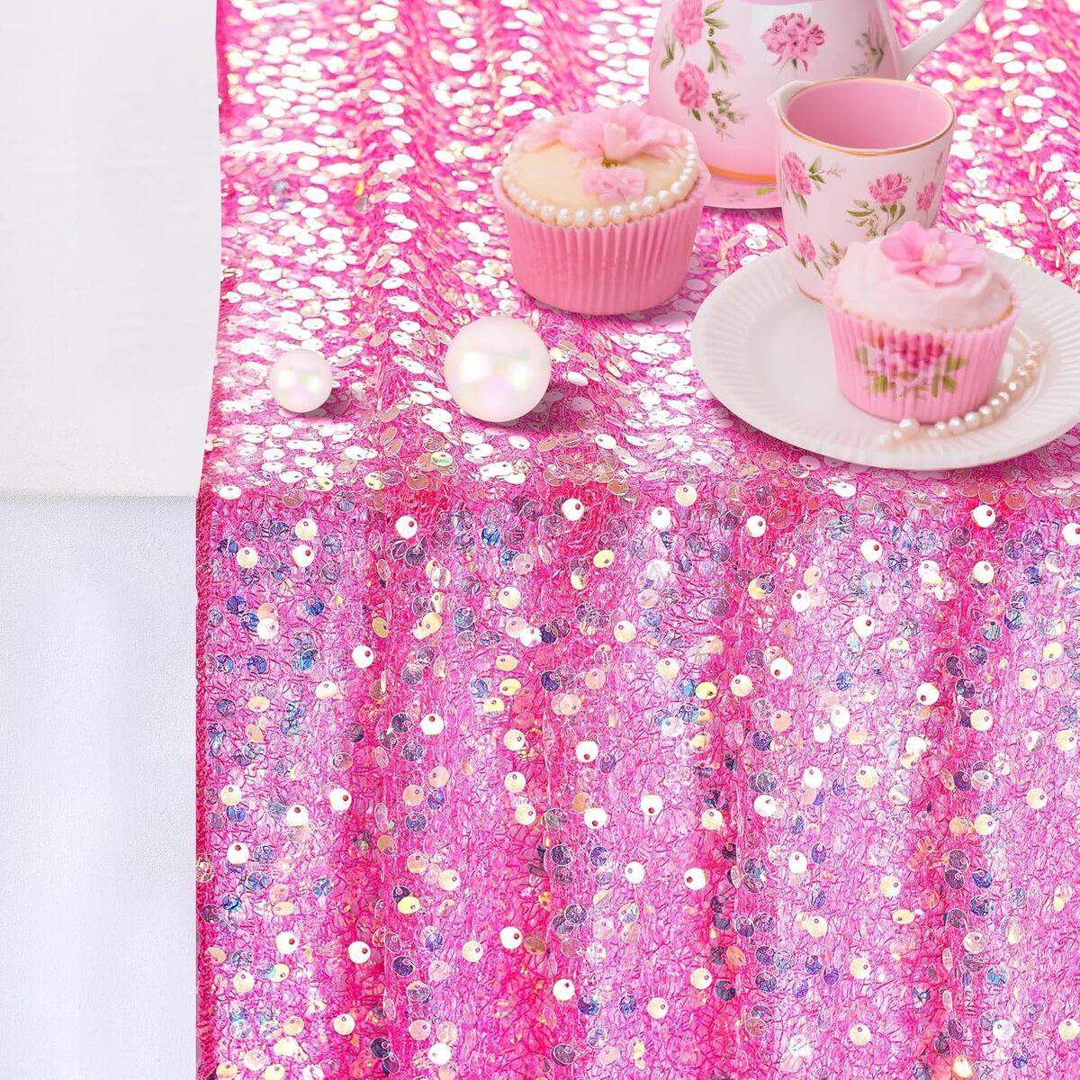 Add bold sparkle and glamour to your table décor with this stunning hot pink sequin table runner. Designed with shimmering 5mm round sequins on a soft mesh backing, it creates a dazzling, mermaid-inspired effect perfect for special events.