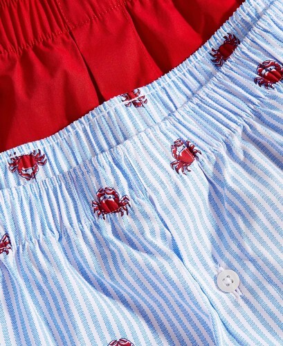 Keep your style snappy with these cotton boxers from Club Room, featuring one pair with a fun crab pattern and a solid pair in a complimentary tone.