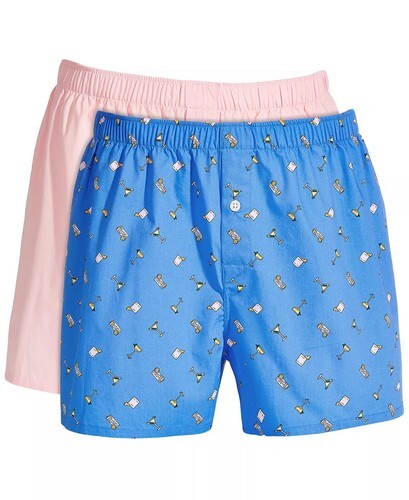Pack of one pair of solid boxers and one pair of cocktail--print boxers