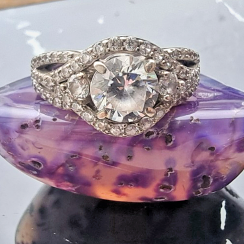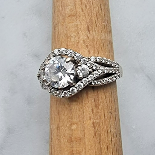 BERRICLE VINTAGE 925 STERLING SILVER Simulated WHITE DIAMOND RING SIZE 6