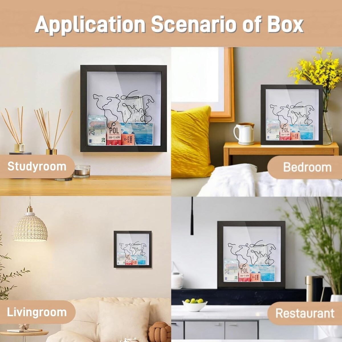 ?Easy to Use?The top of the shadow box is slotted, the thicker space is enough to easily store coins, bills, banknotes, etc., and there is a hook on the back for easy fixing to the wall.