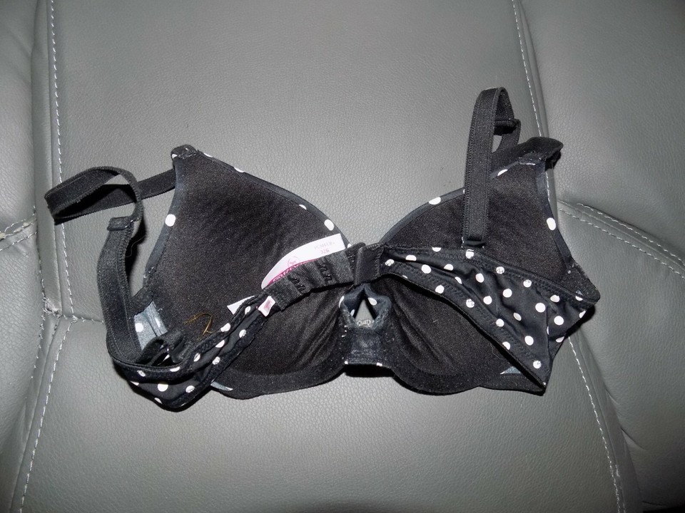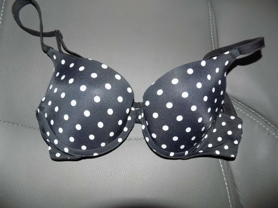 Victoria's Secret Pink Black Polka Dot Push Up Bra Size 32B Women's EUC