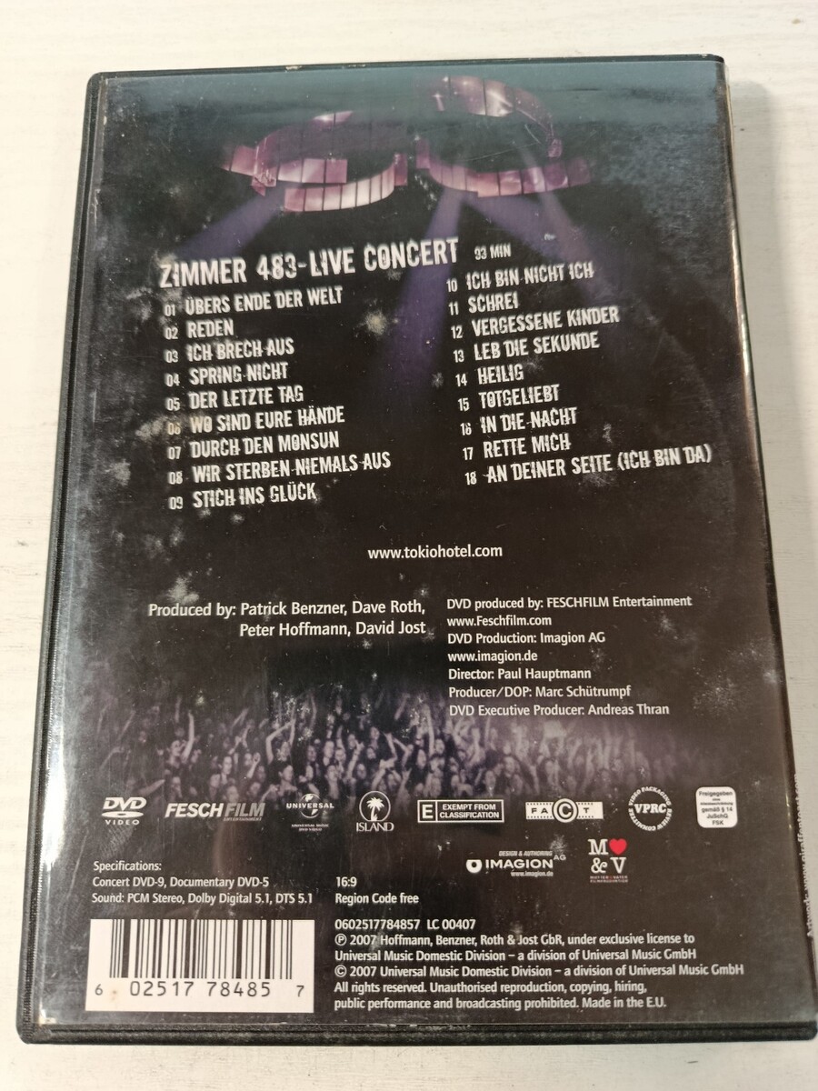 Tokio Hotel DVD, Zimmer 483 Live, Tokio Hotel Concert, Musical DVD, German Rock, Universal Music, Island Records, Tokio Hotel DVD, Tokio Hotel Live, DVD Collectibles
