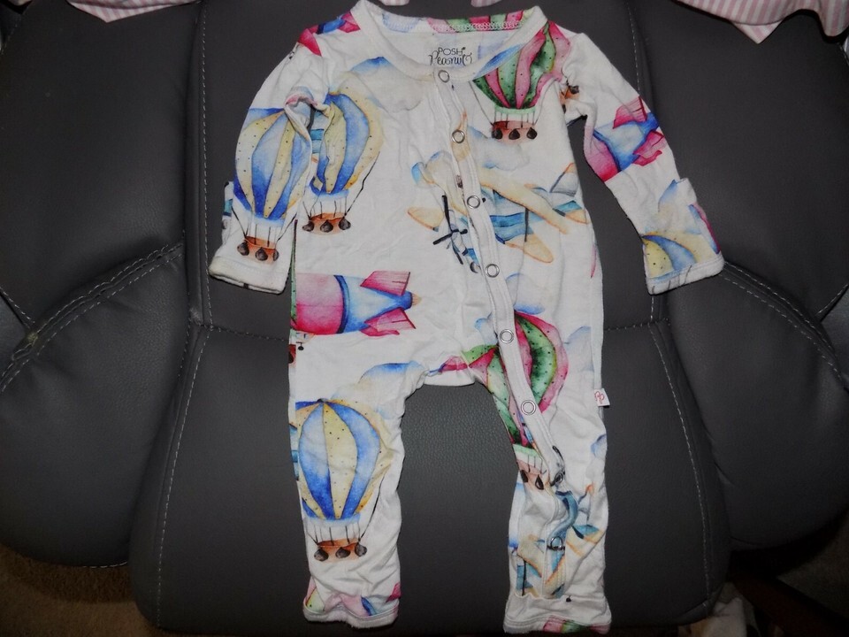 POSH PEANUT VINTAGE HOT AIR BALLOONS LONG SLEEVE ROMPER SIZE NB MONTHS EUC