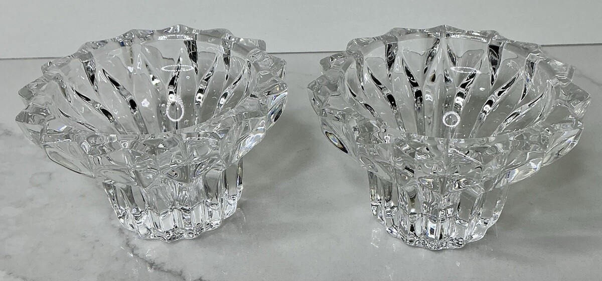 2 Crystal Candle Holders 3.25" Wide Beautiful Preloved