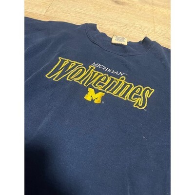 Keywords: Michigan Wolverines, NCAA, College Apparel, Team Spirit, Athletic Wear, Crewneck, Pullover, Fall Fashion, Gameday, University of Michigan, Vintage Style
