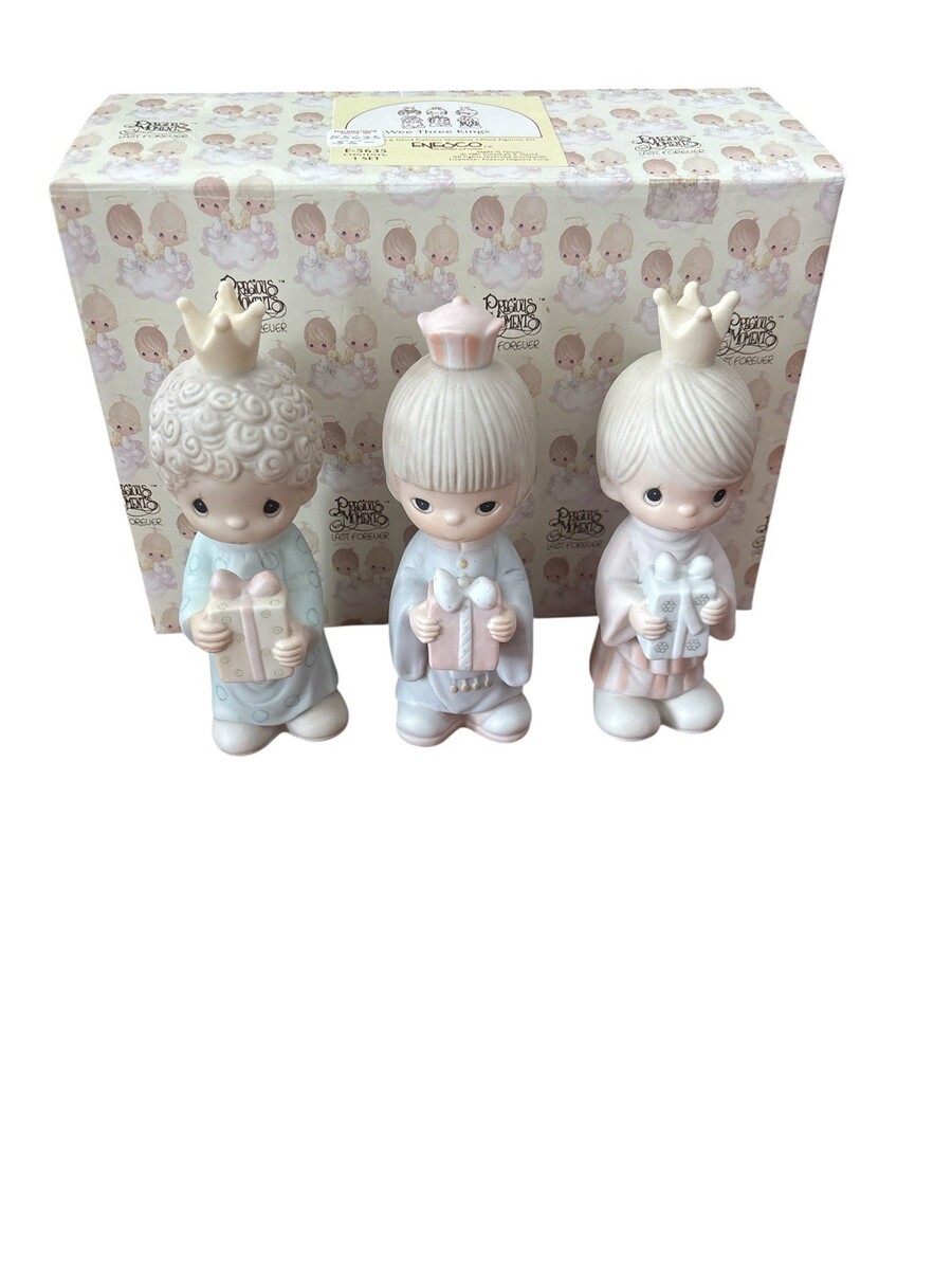 I have for sale a vintage 1985 Enesco Precious Moments Wee We Three Kings Christmas Nativity 3pc E5635. They are about 5? tall. No chips or cracks. If you have any questions, please ask. I do combine shipping. Check out my other items.