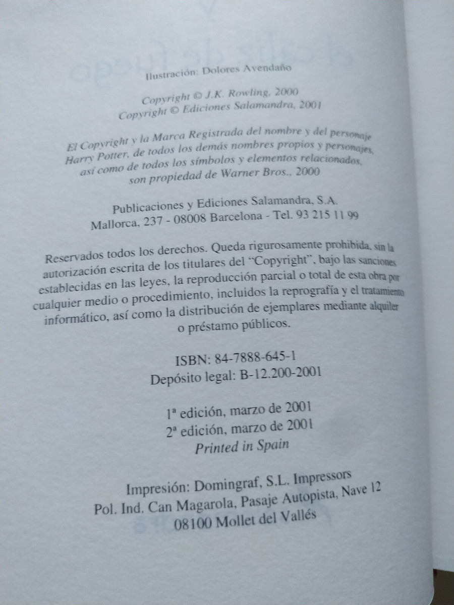 HARRY POTTER And el Goblet de Fire JK Rowling 2001 Salamander - BOOK Spanish Am
