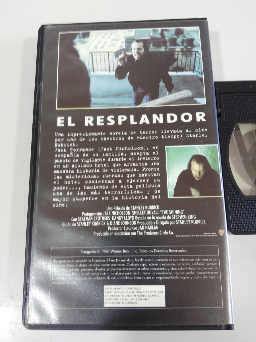 Stephen King, El Resplandor, The Shining, Stanley Kubrick, Jack Nicholson, Shelley Duvall, cine de terror, película de culto, VHS español, cinta coleccionista, rareza VHS, videoclub, terror psicologico, cine vintage, coleccionismo VHS