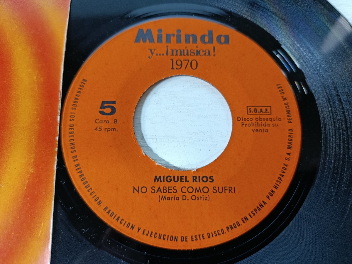Miguel Rios Contra el Cristal (1969 Mirinda Promocional) Single Vinilo 7" VG/VG