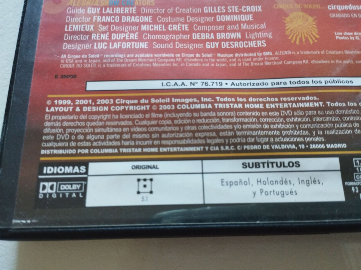 Cirque du Soleil Alegria - DVD Region 2 V.O. con subtitulos