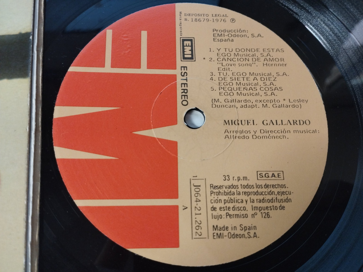 MIGUEL Gallardo EMI 1J064-21262 1976 - LP Vinilo 12" VG/VG