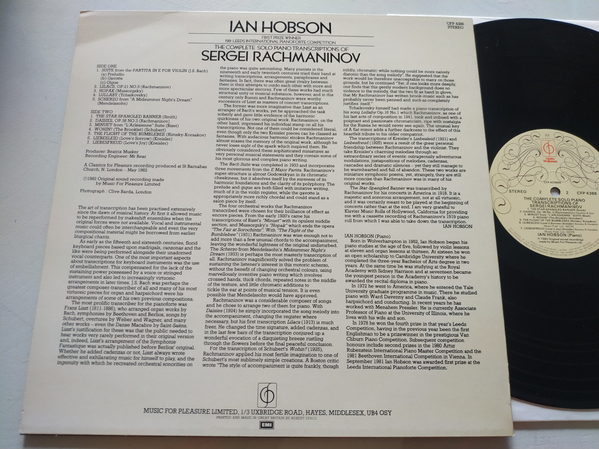 Rachmaninov Complete Solo Piano Ian Hobson CFP 4386 - LP 12" Vinilo VG/VG Am