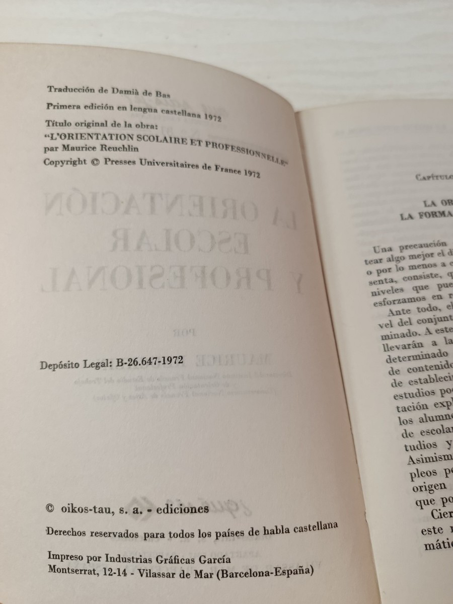 La orientacion escolar y profesional, Maurice Reuchlin, Oikos Tau 1972, psicología educativa, pedagogía, orientacion academica, orientacion laboral, ciencias de la educacion, libro de coleccion, formacion profesional