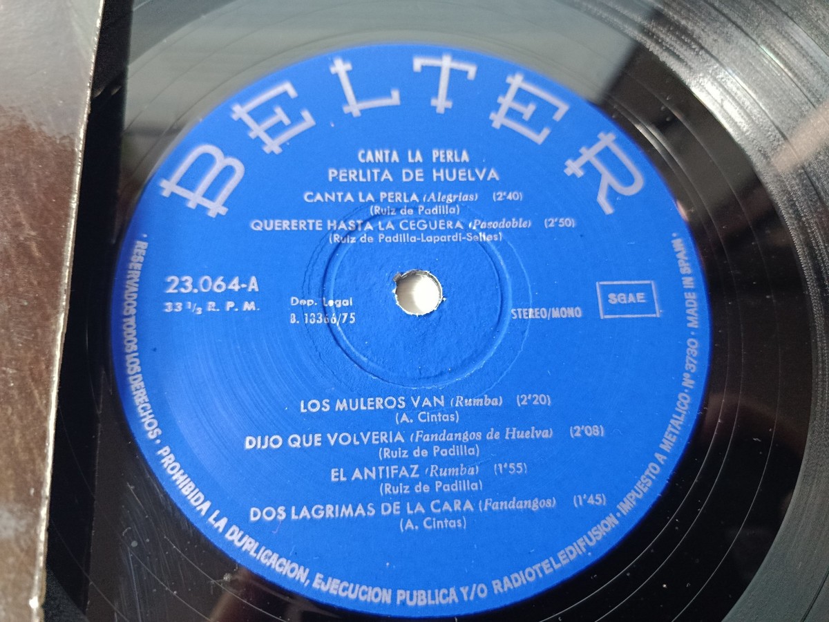 Perlita de Huelva, Canta la Perla, Belter 23064, firmado, firma original, vinilo 12, LP 1975, copla, flamenco, fandangos, música española, rareza, coleccionistas, vintage, pieza única