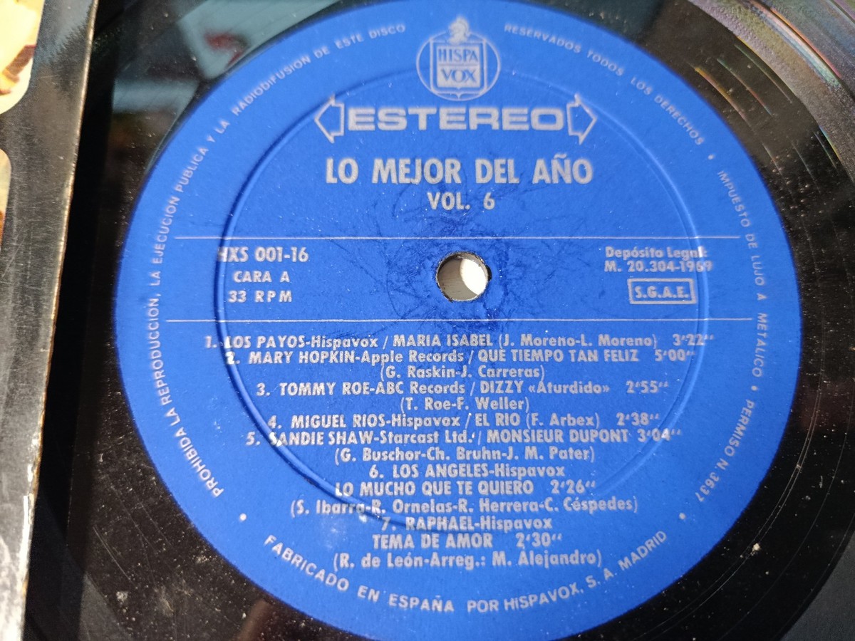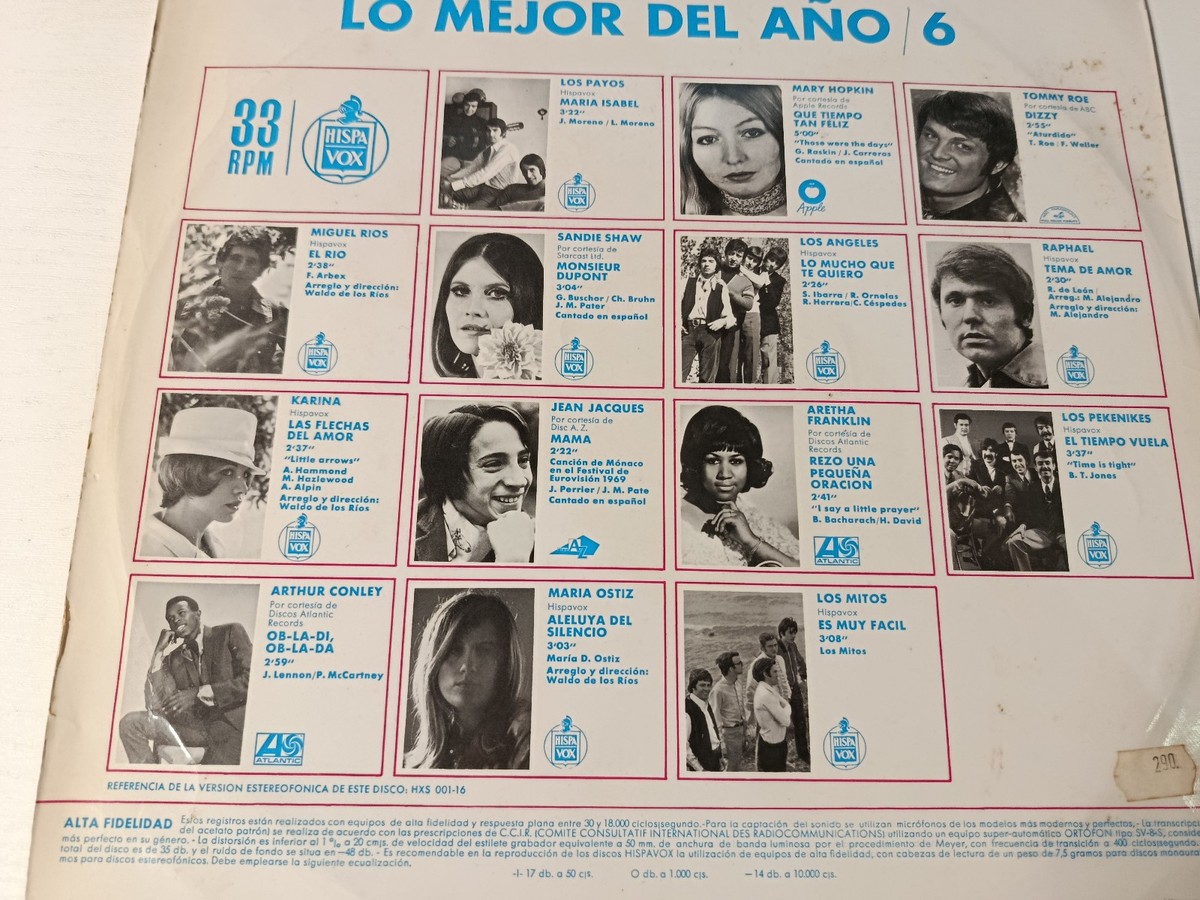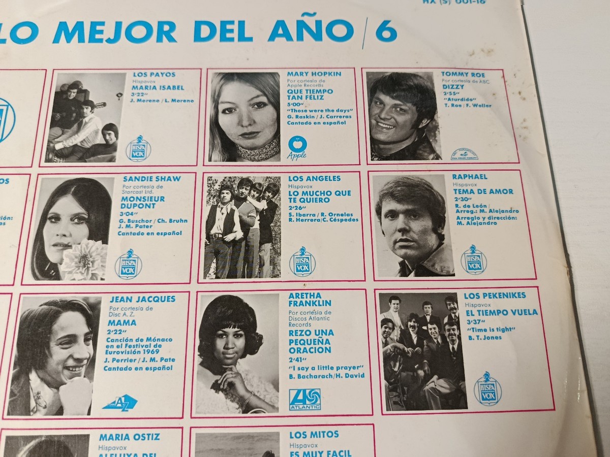 Hispavox, Lo Mejor del Año, Volumen 6, 1969, Raphael, Miguel Rios, Karina, Los Payos, Los Angeles, Aretha Franklin, Sandie Shaw, Vinilo 12, Recopilatorio 60s, Pop Español, Coleccionismo