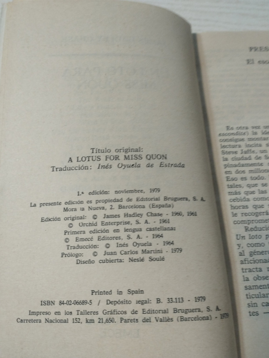 Un Loto para Miss Quon James Hadley Chase Bruguera 1979 - LIBRO Español