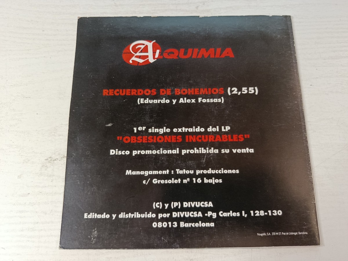 This single de Alchemy ? recuerdos de Bohemians, published in 1992, es a gem paralos collectorsde vinylsde national productiondelos 90s. un emotional and well-produced theme, que represents elsonidode a time marked by new melodic voices in Spain. This edition in 7" es hard de find and keeps both el audiocomoel Graphic design in excellent condition.