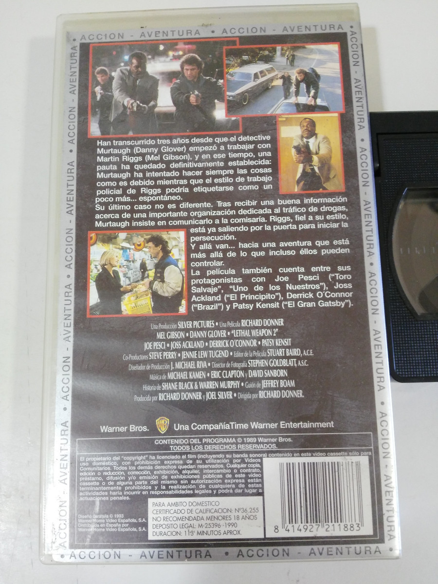 Letal Waffe 2 Lethal Waffe Mel Gibson Danny Glover VHS Tape Castellano Sammler