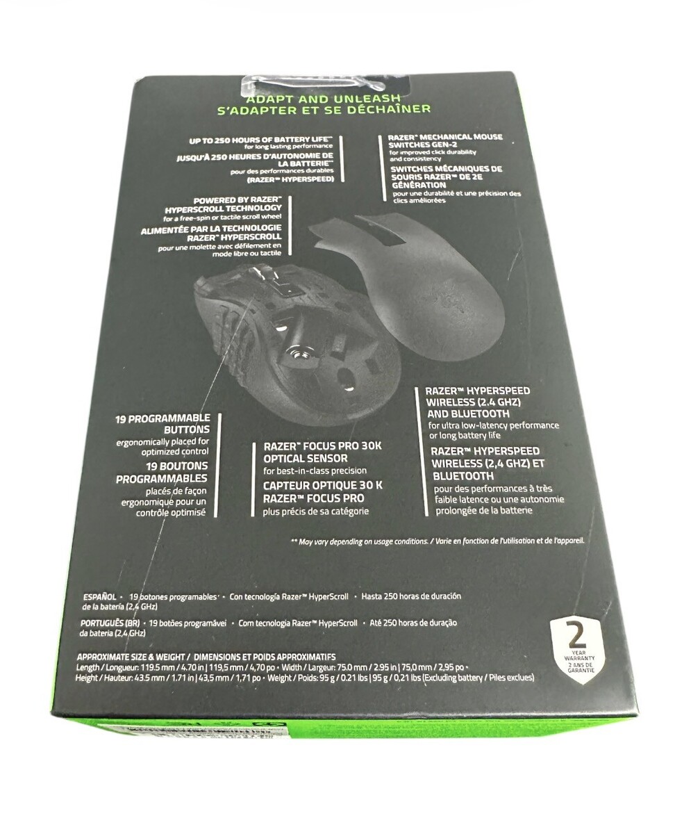 Type: MouseBrand: RazerModel number: RZ01-0360JSize: 3 1/2"Color: blackModel name: Naga V2 HyperspeedCondition:New (Sealed)