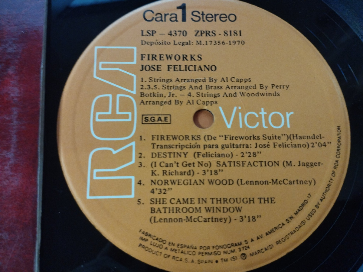 JOSE Feliciano Fireworks RCA 1970 LSP -4370 Edition Spain - LP vinyl 12 "VG/VG