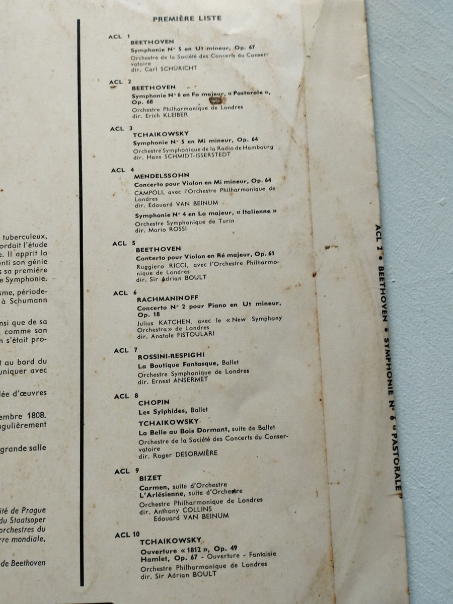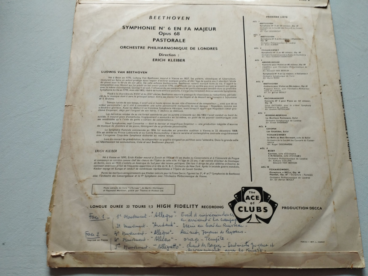 Beethoven Symphonie N 6 Pastorale Eric Kleiber France Press LP vinyl 12 "G+/Vg