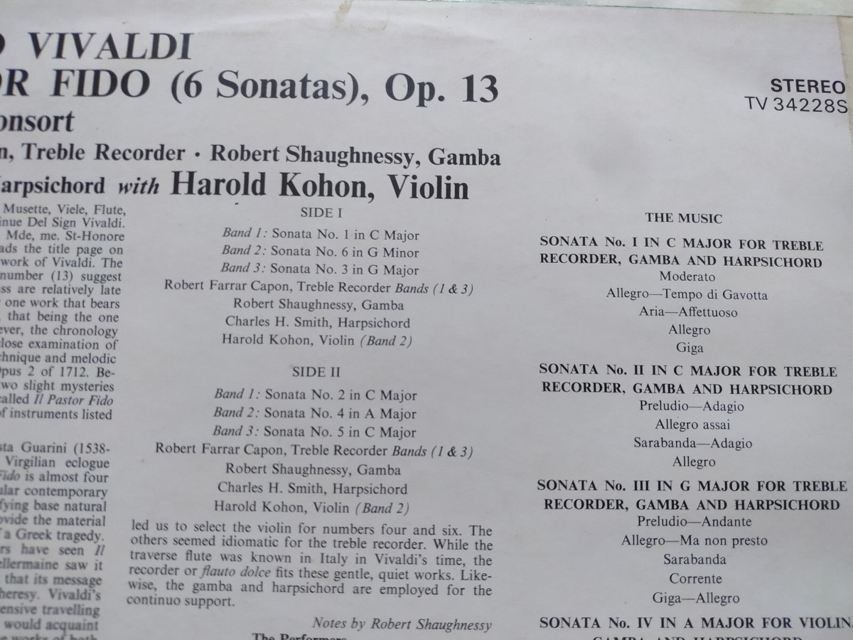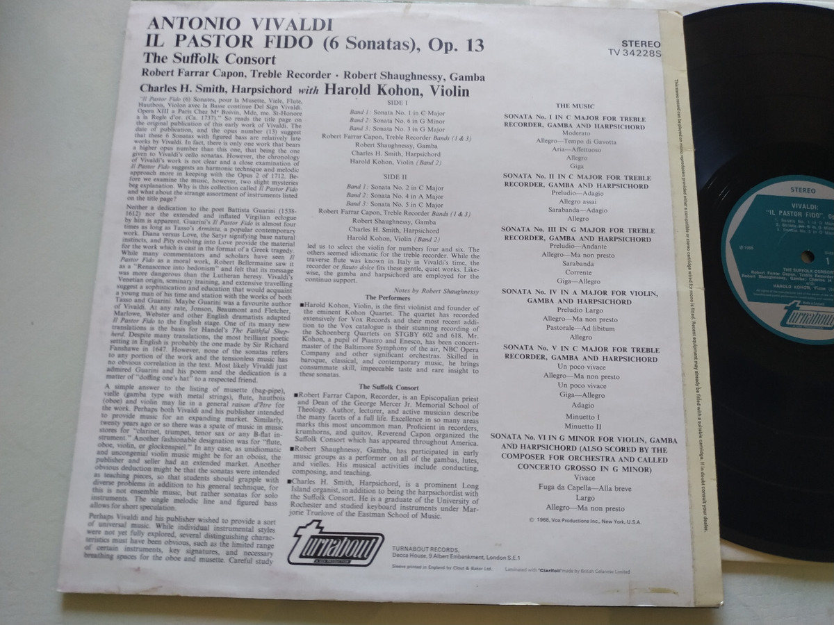 Vivaldi TV 34228S Il Pastor Fido 6 Sonatas 1968 - LP 12" Vinilo VG/VG Am