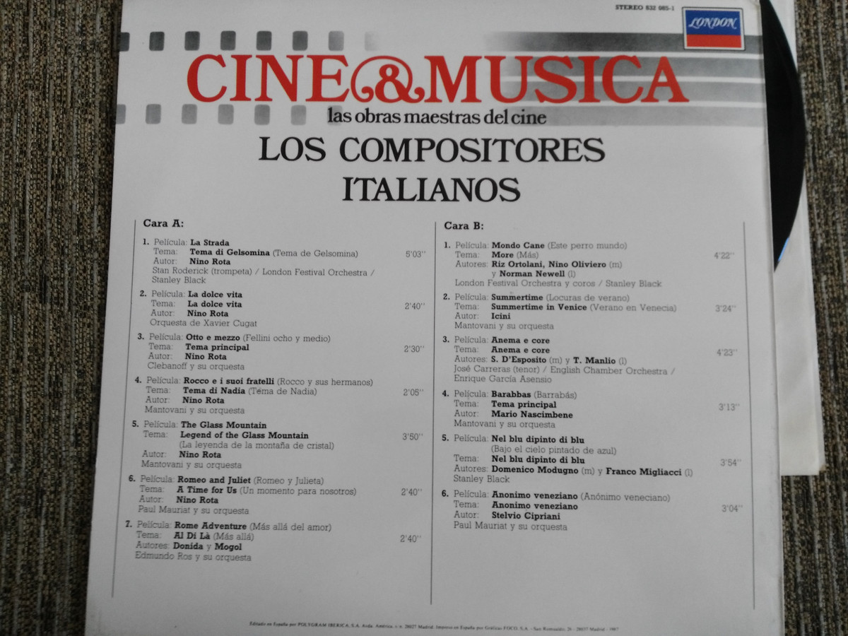 LOS Compositeurs italiens Bande son LP vinyle VINILE 12 "1987 VG + / VG + Londres
