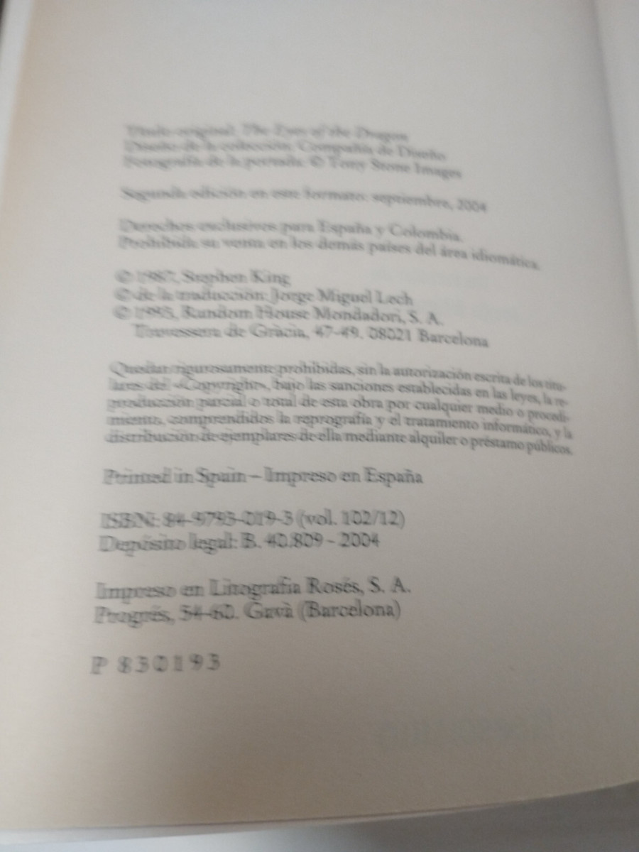 los ojos del dragon STEPHEN KING 2004 Debolsillo - BOOK 395 Pgs Spanish 3T