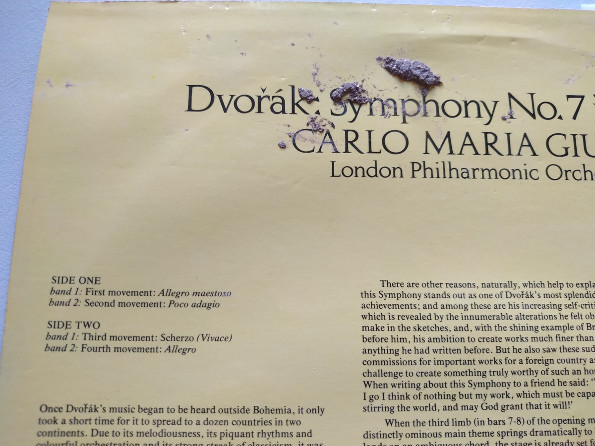 Dvorak Symphony 7 in D Minor Carlo Maria Giulini 1977 - LP 12" Vinilo VG/VG Am