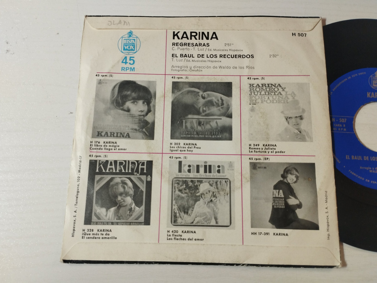 Karina El Baul de los Recuerdos Regresaras 1969 H-507 Single LP Vinilo 7" VG/VG