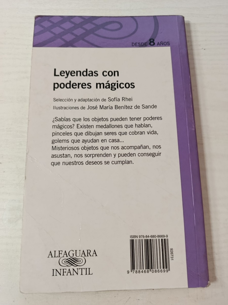 Leyendas con pouvoirs magiques rassemble des histoires traditionnelles adaptees par Sofía Rhei, con des illustrations de Jose María Benítezde Sande. A travers de pages, los decouvrent des objetsextraordinarioscomo medaillonsque parler, pinceauxque ils facturentvida ou des golensque Ils aident a casa . Historias plein de mystere et de magie que surprennent, effraient et enchantent, rapprochant le jeune lecteur dupoderde imaginaire et tradition orale. Publie par Alfaguara Infantil en 2014, es un livre idealpara encourager la lecture des l?enfance.
