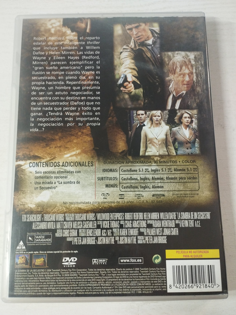 L'ombra de Un rapimento Robert Redford Mirren Dafoe - DVD spagnolo inglese am