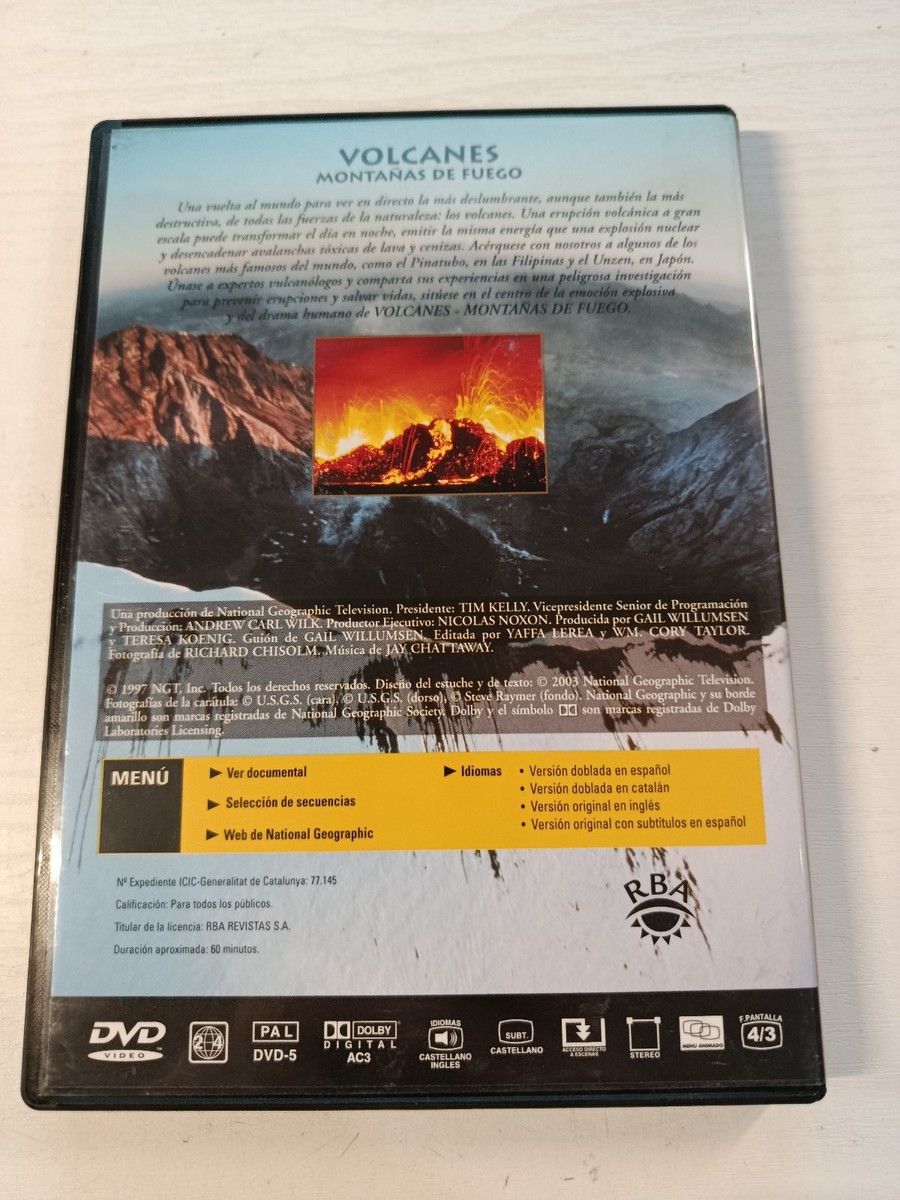 original dvd National Geographic ? Volcanoes: Mountains de Fire, con audio in Spanish and English. Ideal para collectors and lovers de geology, nature andlos extreme phenomena. A visually striking and educational production, con the characteristic quality and elde National Geographic.