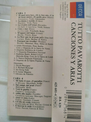 Luciano Pavarotti Tutto Pavarotti 1989 DECCA - Tape Cassette Volumen 2
