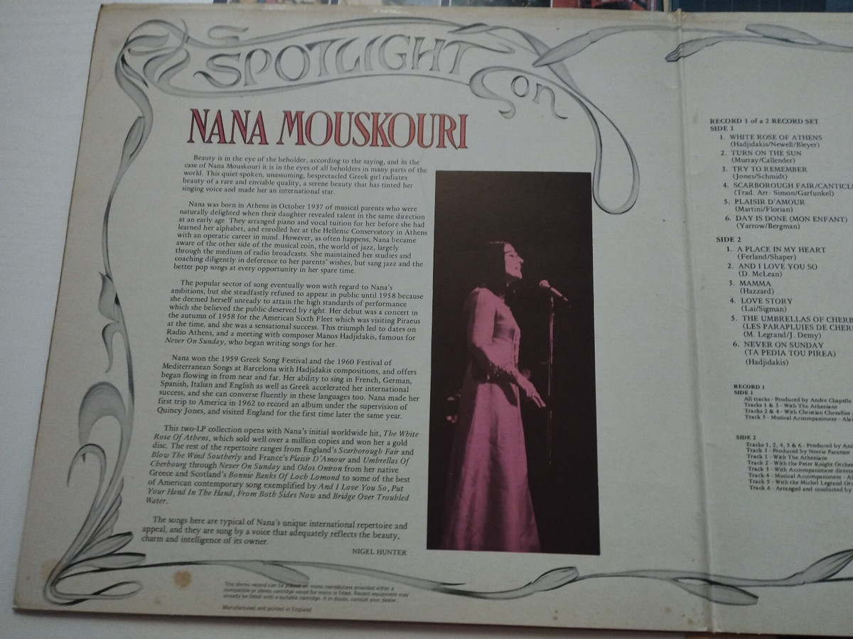 Nana Mouskouri Spotlight 1973 UK Press Fontana - 2 x LP 12" Vinilo - VG/VG Am