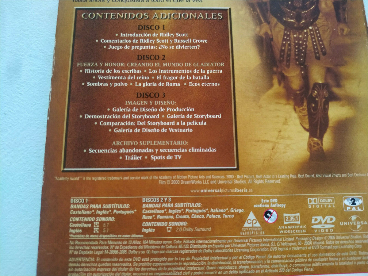 Gladiator Russell Crowe Ridley Scott Extended Edition 3 x DVD espagnol anglais 3T