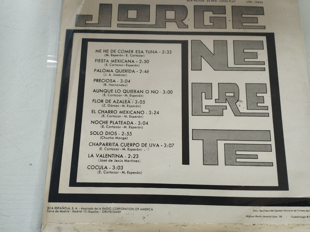 Jorge Negrete exitos Rca Victor 1967 Lpm and 50 similar items