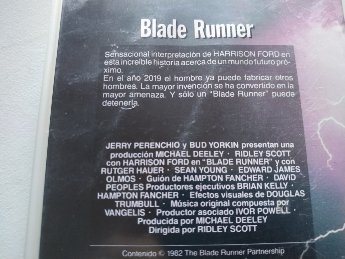 Blade Runner Ridley Scott Harrison Ford Rutger Hauer - ruban de bande espagnole VHS