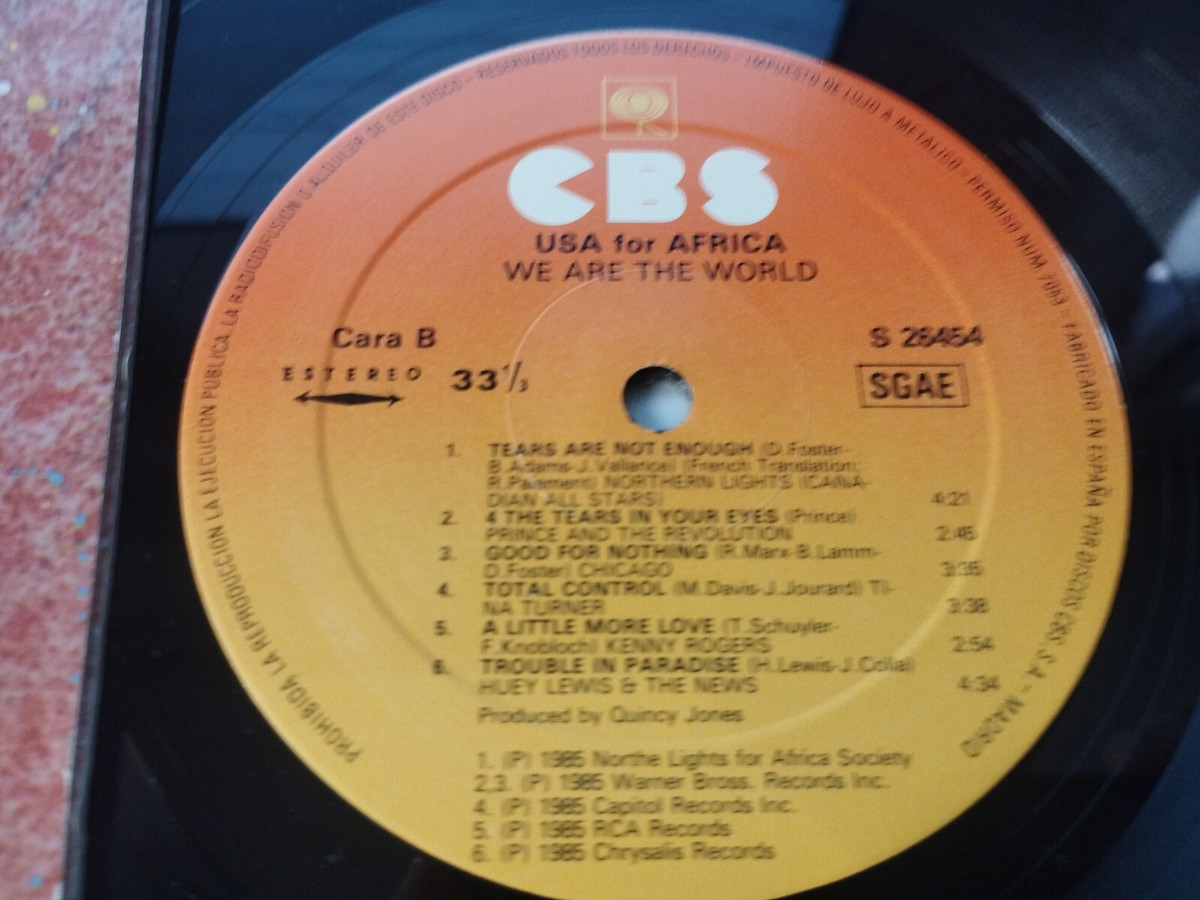USA For Africa vinyl , We Are The World LP, MICHAELJACKSONvinyl , S26454CBS , solidarity album 1985,vinyl 80s pop, BruceSPRINGSTEEN LP, charity collectionvinyl , Spanish edition USA For Africa, historical vinylMICHAELJACKSON