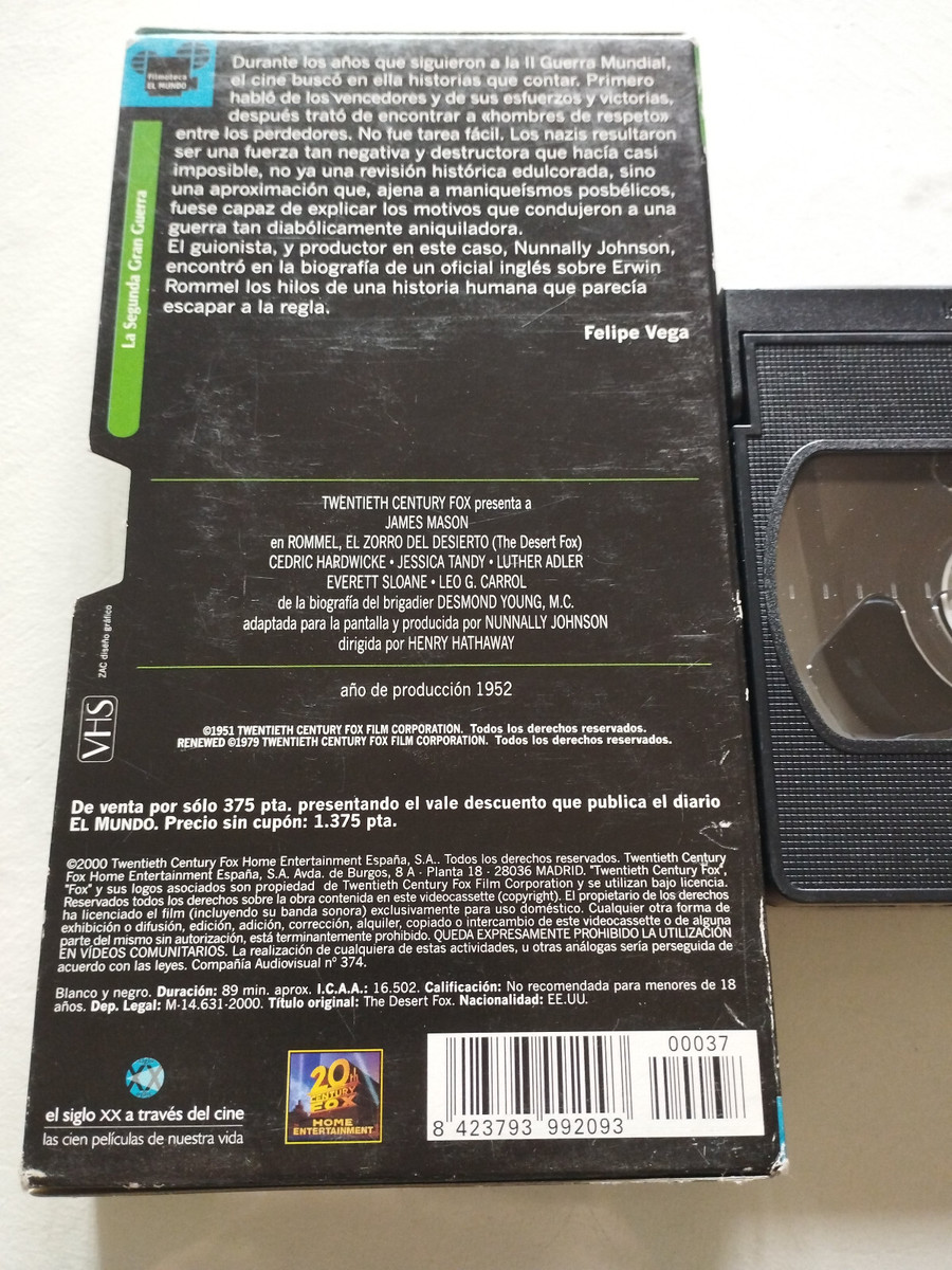 Rommel El del Fox Henry Hathaway Fox - Bande espagnole du film VHS