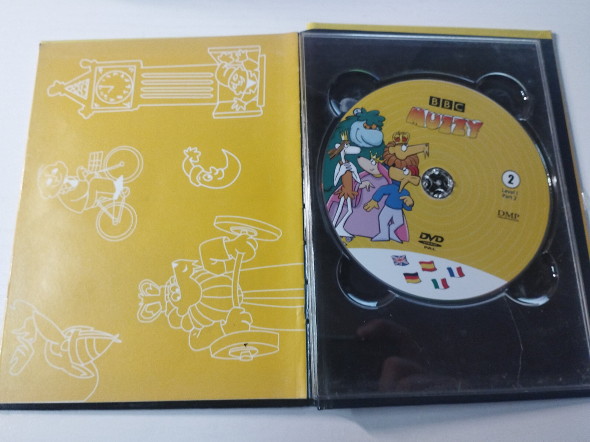 BBC Muzzy, Level 1 Part 2, DMP Organization, DVD libro, curso de idiomas, aprendizaje infantil, ingles, frances, aleman, italiano, español, Region 2, educacion bilingüe, Muzzy BBC original, 2005, curso multilingüe, material didactico, coleccion educativa, DVD educativo, libro ilustrado, clasico BBC