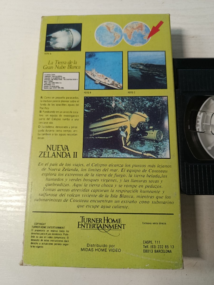 Jacques Cousteau, Tierra de Nuage Blanc, Nouvelle-Zelande, Turner Broadcasting, documentaire nature, VHS espagnole, 1990, Cousteau Society, faune marine, explorateur des oceans, documentaire classique, collection Cousteau, serie documentaire, VHS vintage, cassette retro, collection scientifique, video environnementale